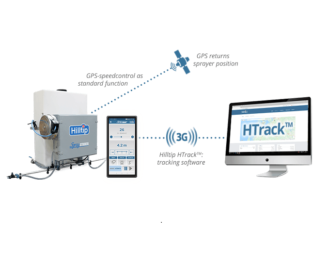 Saltlakespridaren är kompatibel med HTrack™ spårningssystem. Du kan följa upp och hantera alla dina spridare och snöplogar online på din dator, surfplatta eller smarttelefon. Med HTrack™ kan du välja att visa spridningsrutt och –detaljer på en karta i realtid eller mellan valda tidsintervall. Spridningsdata som t.ex. fordonshastighet, GPS-position och materialmängd visas, och kan summeras och genereras som PDF-rapporter eller skrivas ut.