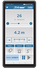 Med smartphone-appen StrikeSmart™ kan du anpassa spridningen enligt situation. Automatisk GPS-hastighetskontroll justerar spridningsmängden (g/m²) utgående från bilens hastighet, medan du i manuellt läge anger en fast matarhastighet. Appen sparar viktig spridningsdata, vilket kan sändas till trackingsystemet HTrack™ där du kan generera spridningsrapporter. Med detta trådlösa styrsystem kan du enkelt slå på/av arbetsbelysning, tillvalsvibrator och andra funktioner via smartphonen utan att behöva stiga ut ur fordonet.